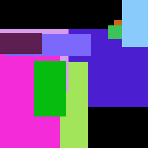 Green, orange, pink, red, yellow